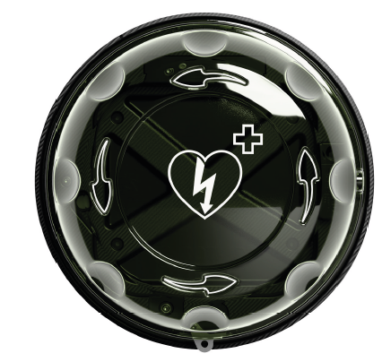 De ronde kap, voorzien van uitsparingen voor een ferme grip, is vervaardigd van 100% krasbestendig Polycarbonaat, in een dikte van 5 millimeter. Dit zorgt voor een robuuste, stof- en waterdichte behuizing van uw AED.