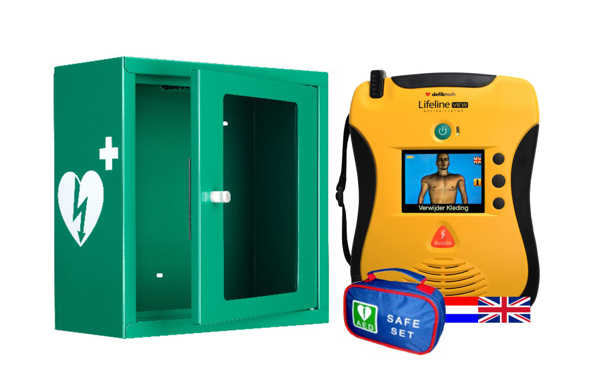 Defibtech Lifeline AED view (Nederlands / Engels) + Indoor AED kast