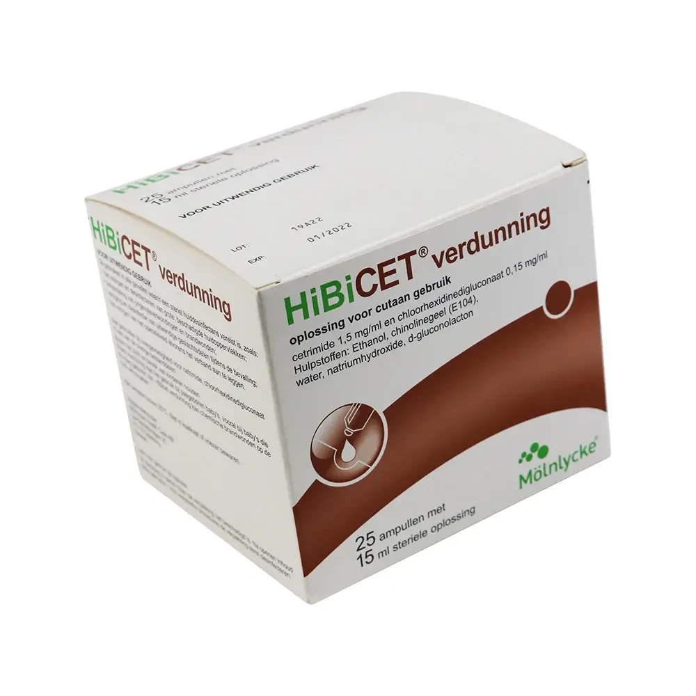 Hibicet verdunning is een steriele, gebruiksklare waterige oplossing voor uitwendig gebruik die als ontsmettingsmiddel kan worden toegepast bij o.a.
