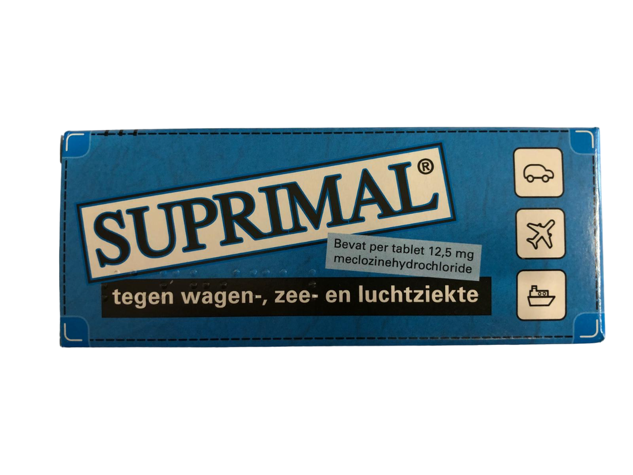 Suprimal bevat meclozine (in de vorm van meclozinehydrochloride) als werkzaam bestanddeel.