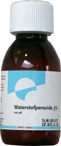 Waterstofperoxide 3% 110 ml. Voor het verwijderen van bloed- en vruchtvlekken. Spoelmiddel. Samenstelling: Aqua, hydrogeniperoxidum.
