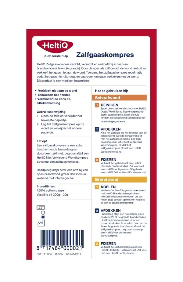 Gebruik een zalfgaas altijd in combinatie met een gaaskompres en een (zelfhechtend) fixatiewindsel of hechtpleister. Het product is erg geschikt voor gebruik bij kinderen.