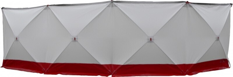 Het scherm dat uit vier panelen van 1.8 x 1.8m bestaat, kan prima op zichzelf staan.