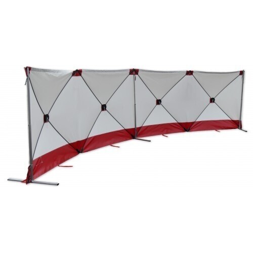 Het Safety Screen (7.2m breed x 1.8 m hoog) is snel en eenvoudig op te zetten, door het unieke opspansysteem. Het stevige afzetscherm is geschikt ter afscherming van ongevallen of andere zaken die buiten het zicht van voorbijgangers gehouden moeten worden.
