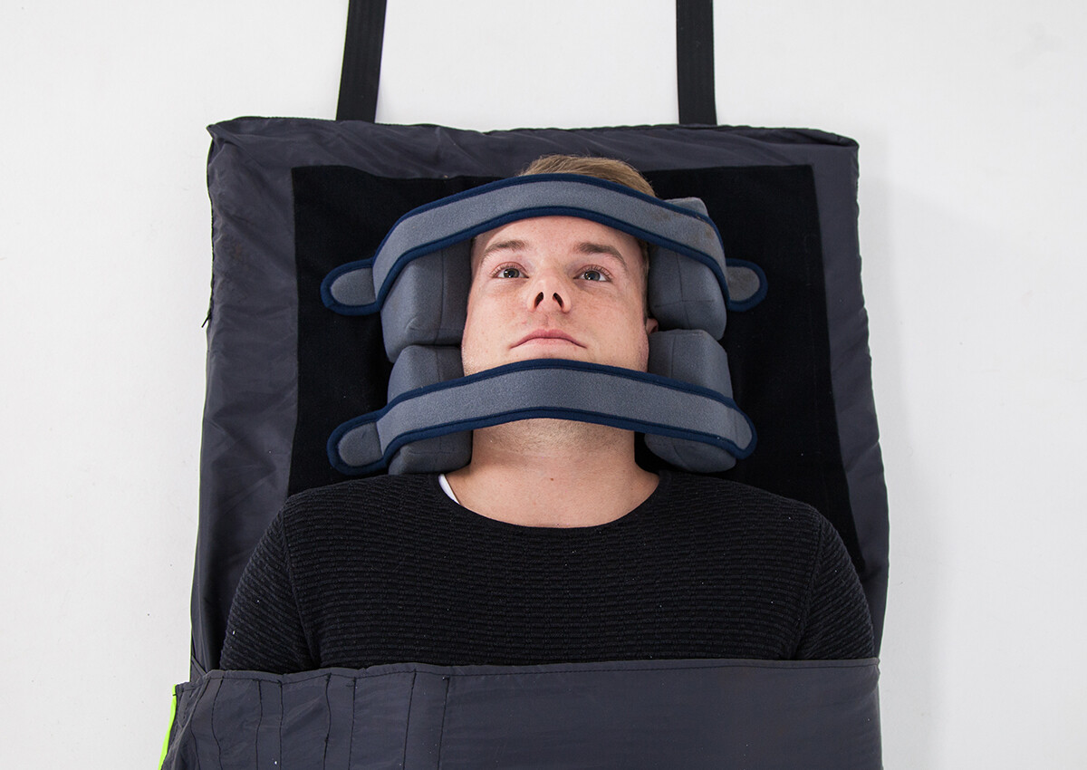 Deze vezel is 15 keer sterker dan staal. Head blocks om het hoofd te fixeren en Card board die het gewicht van het slachtoffer verdeeld.