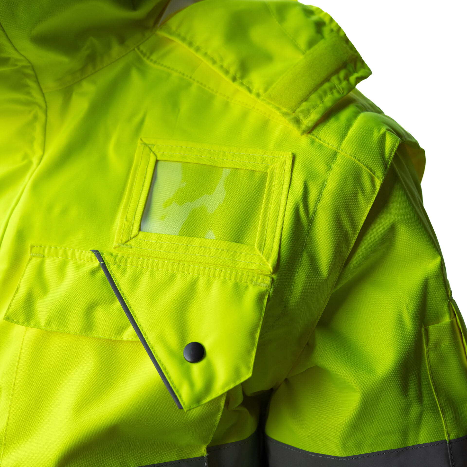 Lichtgewicht, water-, winddicht en ademend, verlengd rugpand, badgehouder, 2 borstzakken, dubbel zakken, uitritsbare voering, afritsbare mouwen en verstelbaar d.m.v. klittenband, ook op de mouw een zakje voor bijv. pen, geintegreerde capuchon met stelkoord.