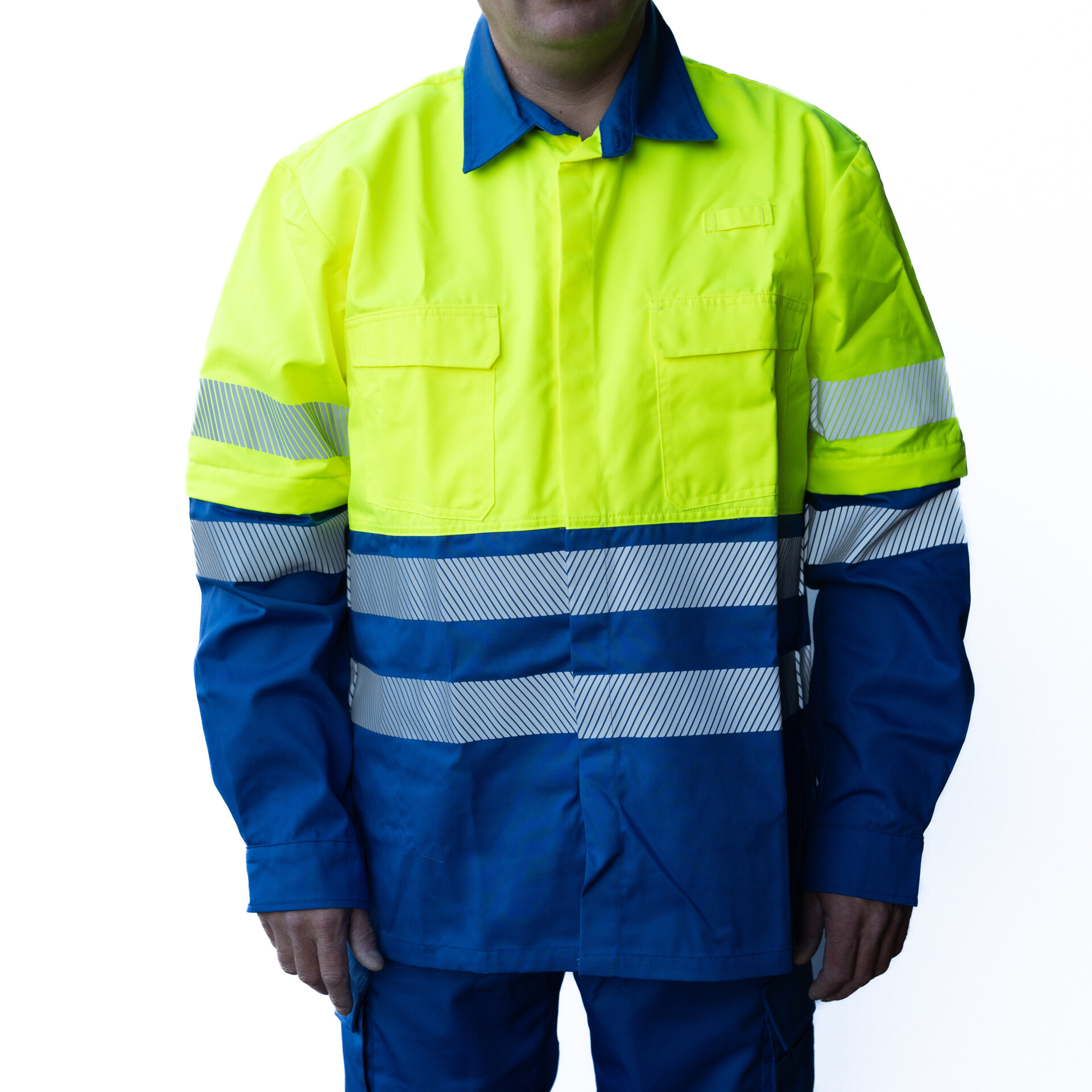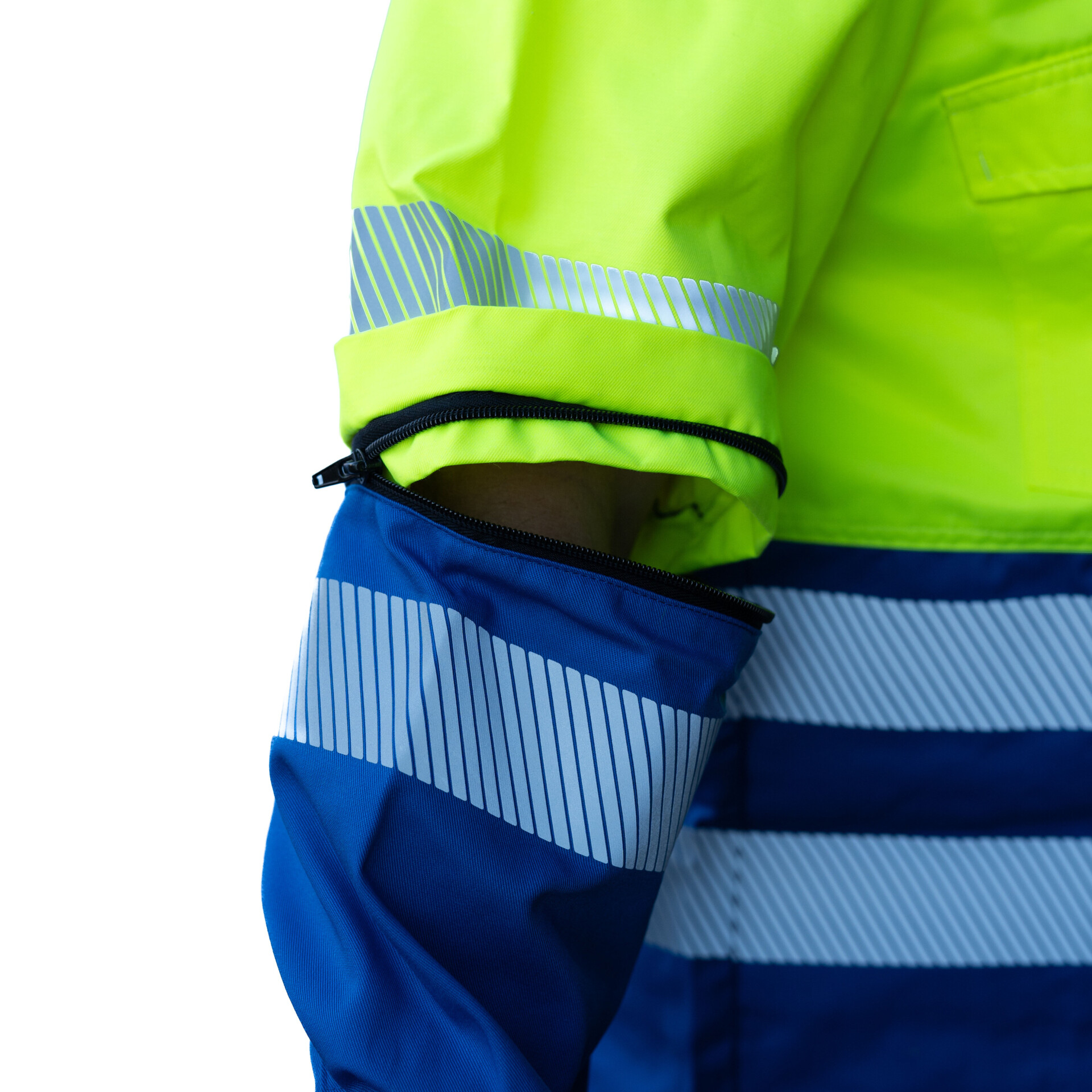 Werkhemd EHBO royalblauw/yellow - reflectiestriping met afritsbare mouwen en ruglogo EHBO