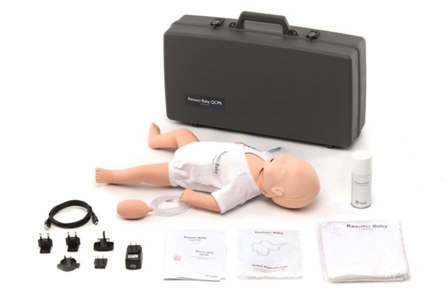 De Resusci Baby QCPR luchtweghoofd heeft de uiterlijke kenmerken van een 3 maanden oude baby. Het levensechte beademingsmechanisme zorgt ervoor dat beademingstechnieken kunnen worden getraind.