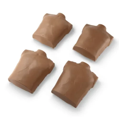 Deze betaalbare alternatieve borsthuiden zijn donker van kleur. Het bevestigen van de huiden aan het torso is moeiteloos. De huiden worden geleverd in een set van vier stuks. Ze zijn speciaal ontworpen voor gebruik met de Prestan Professional Kind reanimatiepoppen.