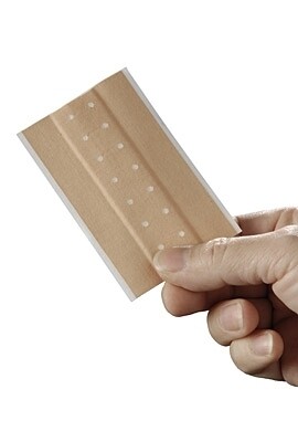 Wondpleister textiel in een hersluitbaar plastic zakje.