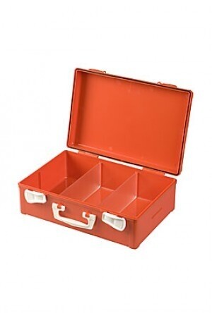ABS verbandkoffer met vaste vakindeling en de koffer wordt geleverd met wandbeugel.