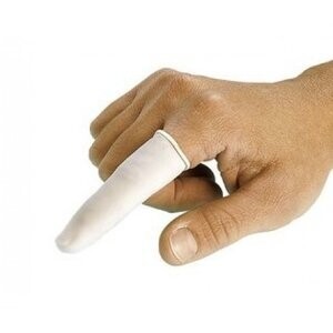 Wondje afdekken met een steriel gaasje of pleister en er een plastic vingercondoom over schuiven.